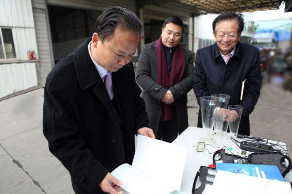 2014年2月10日,在通威股份總裁助理、技術(shù)中心辦公室主任劉輝芬,通威股份設施漁業(yè)工程研究所所長(cháng)吳宗文的陪同下,通威集團董事局劉漢元主席到成都飛創(chuàng )科技有限公司雙流生產(chǎn)基地,視察了電化水工程研究室創(chuàng )新制造的兩種已取得成都市產(chǎn)品質(zhì)量監督檢驗院出具產(chǎn)品合格證的電化水成套設備。